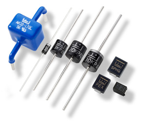 TVS二极管用于保护半导体元件免受高压瞬变的影响。它们的p-n结具有比普通二极管更大的横截面积,使它们能够将大电流传导到地而不会受到损坏。Littelfuse提供峰值额定功率为400 W至30 kW的TVS二极管,反向隔离电压为5V至495 V。